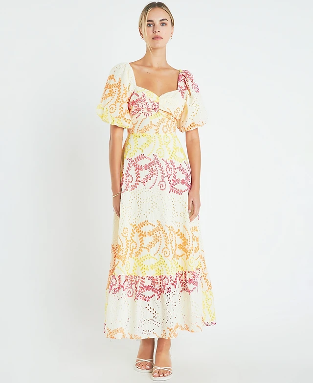 English Factory Women's Cotton Eyelet Puff-Sleeve Maxi Dress