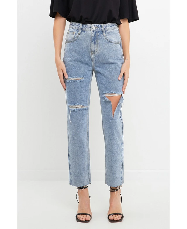 English Factory Women's Destroyed Mom Jeans