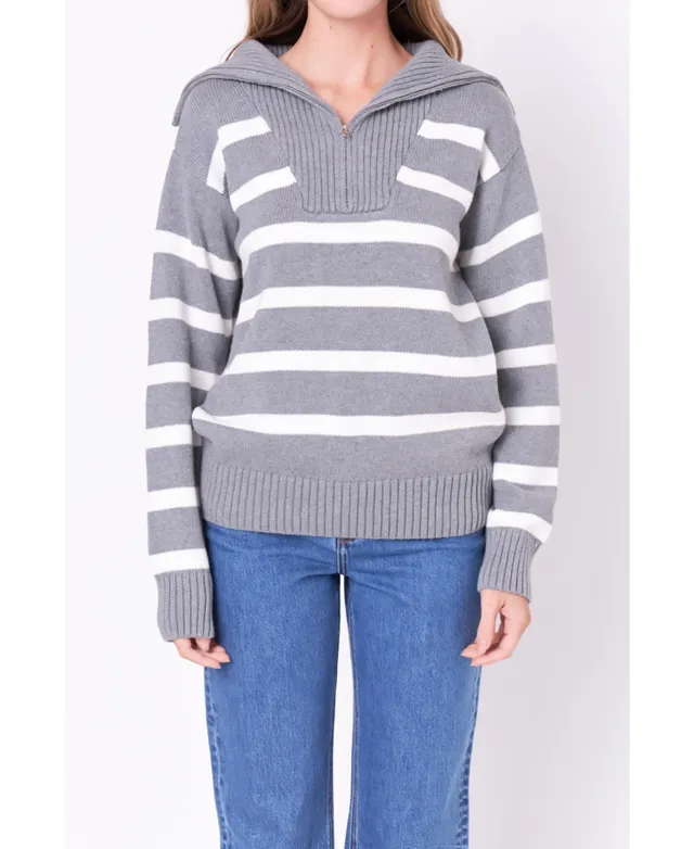 English Factory Women's Striped Knit Zip Pullover Sweater