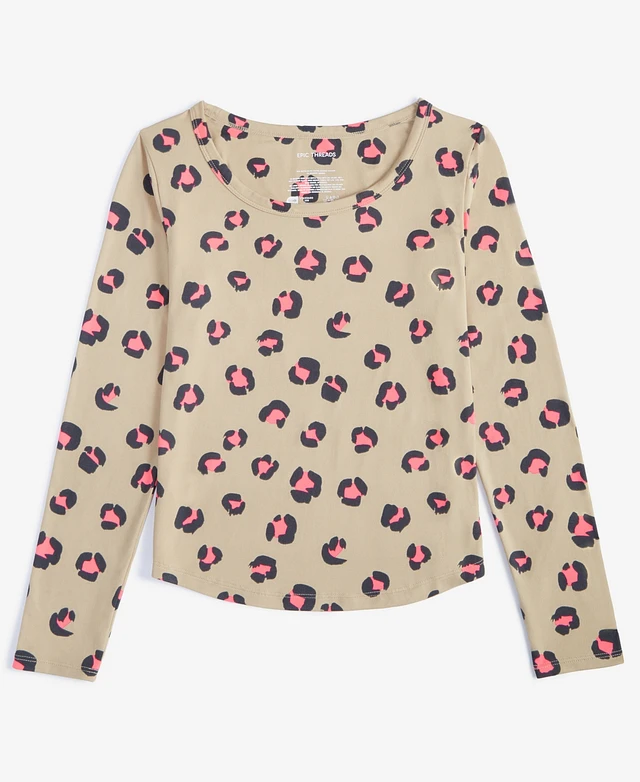 Epic Threads Girls Long-Sleeve Pop Leopard-Print Top, Created for Macy's