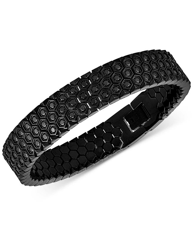 Esquire Men's Jewelry Black Spinel Honeycomb Link Bracelet (5-3/8 ct. t.w.) in Black Ion-Plated Stainless Steel, Created for Macy's