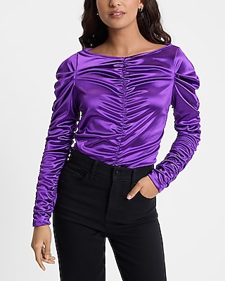Satin Ruched Long Sleeve Tee