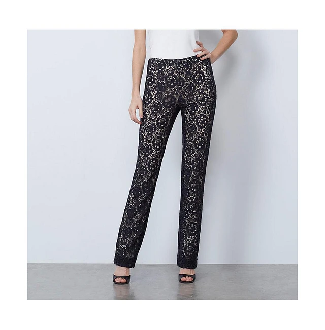 Etcetera Women's Black Floral Lace Pants Ranunculus