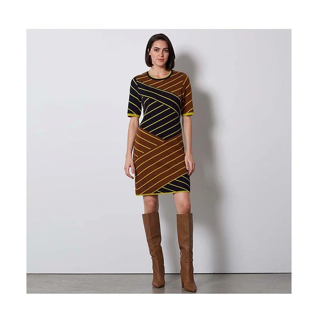 Eloquii Women's Plus Size Mixed Stripe Ribbed Dress