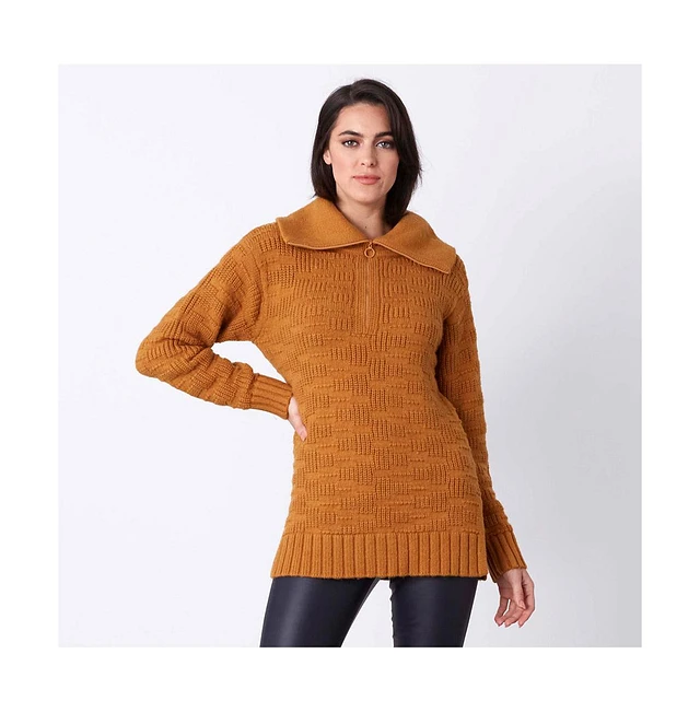 Belldini Women's Ribbed Quarter-Zip Sweater
