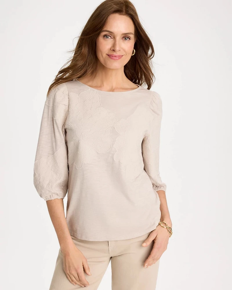 Made with soft-stretch cotton slub fabric. Featuring etched floral design details for an elevated look and feel.