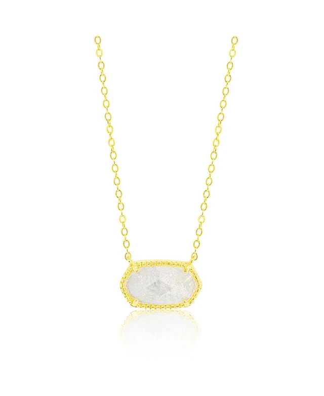 Etoielle Create Mother of Pearl and Halo Cubic Zirconia Gemstone Necklace Yellow Gold Tone Necklace (Copy)