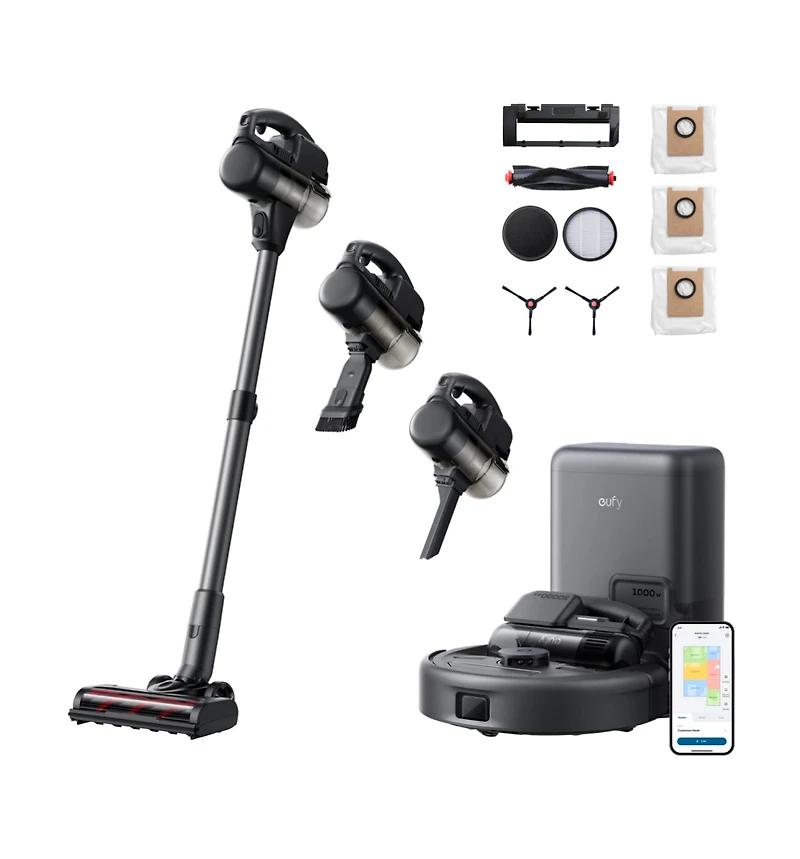 The eufy Robot Vacuum 3-in-1 E20 is the world's first detachable multi-function robot vacuum. It seamlessly transforms from a powerful robot vacuum to a versatile stick vacuum or a portable handheld vacuum, making it the ultimate cleaning solution for your home - from floors to stairs and everything in between. Equipped with high-performance filters, a powerful 30,000 Pa suction for handheld and stick modes, an auto-empty station, faster charging, and millimeter-level obstacle avoidance, the E20 is designed to serve you and your family anytime, with unmatched convenience and efficiency.