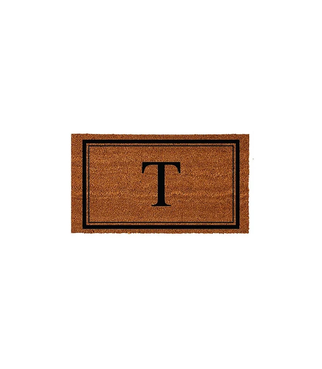 Evergreen Monogram Indoor Outdoor 100% Natural Coir Doormat 28" x 16" | Letter "T"