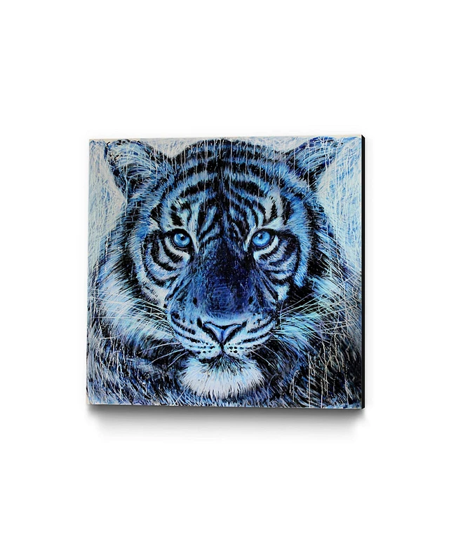 Eyes On Walls Dino Tomic Blue Tiger Splatter Museum Mounted Canvas 18" x 18"