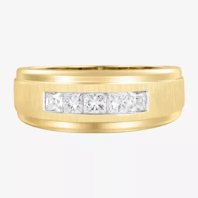 (F / Vs2) Mens 9.5MM 1 CT. T.W. Lab Grown White Diamond 14K Gold 5-Stone Wedding Band