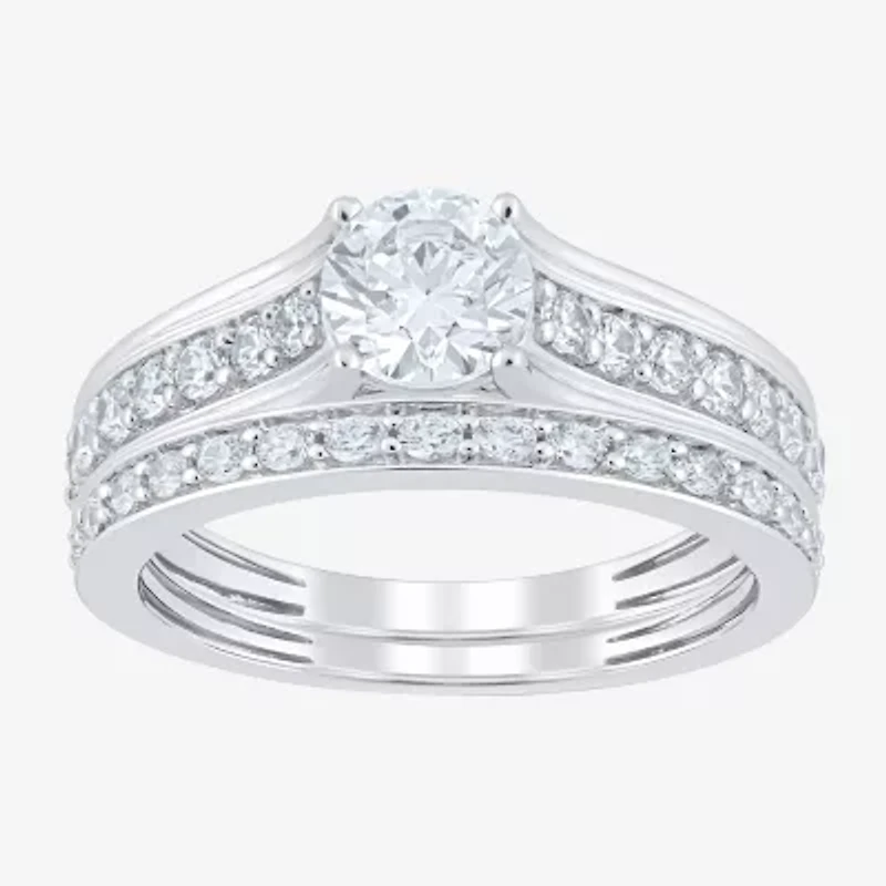 F /Vs2) Unisex Adult 2 CT. T.W. Lab Grown White Diamond 10K Gold Side Stone Wedding Bridal Set