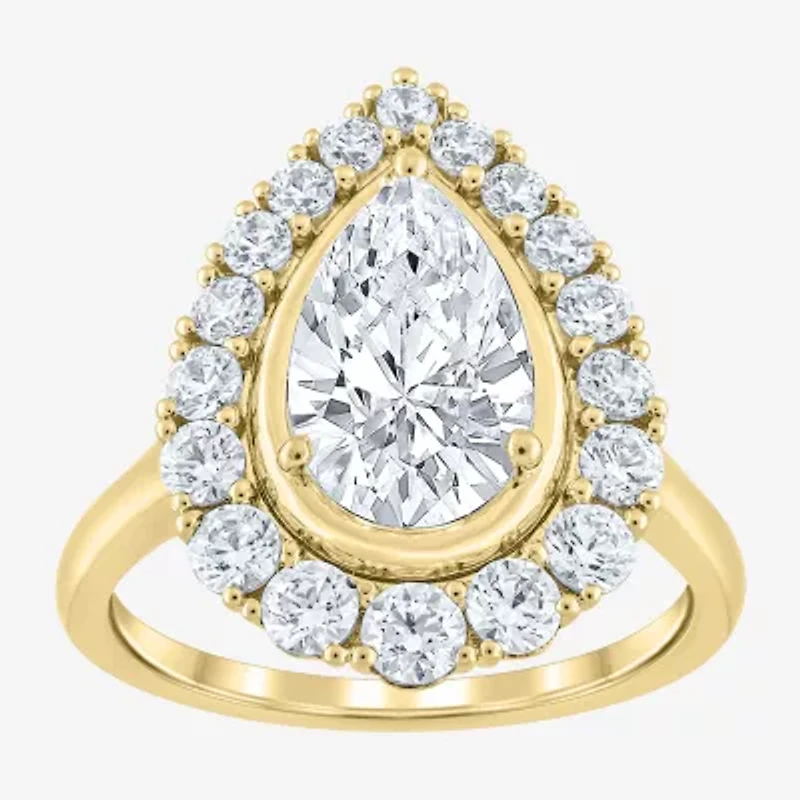 (F / Vs2) Womens 3 CT. T.W. Lab Grown White Diamond 10K Gold Pear Halo Cocktail Ring
