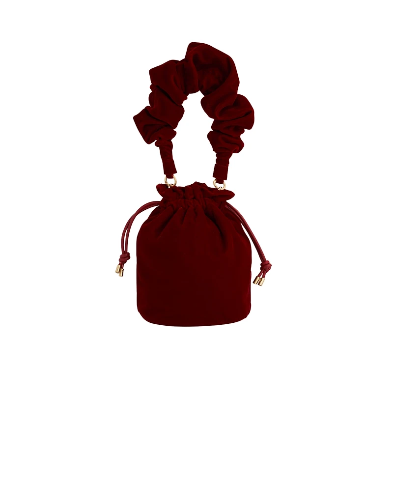 A true showstopper, this soft, tactile velvet-like Bucket Bag in a deep ruby red is a sensory delight. With a ruffled handle, drawstring closure and soft rope straps, it keeps whatever you've nestled inside safe and sound and adds an air of refined elegance to your outfit. Whether you're heading to a winter soiree or simply want to elevate your basics, it's a one-of-a-kind accessory.