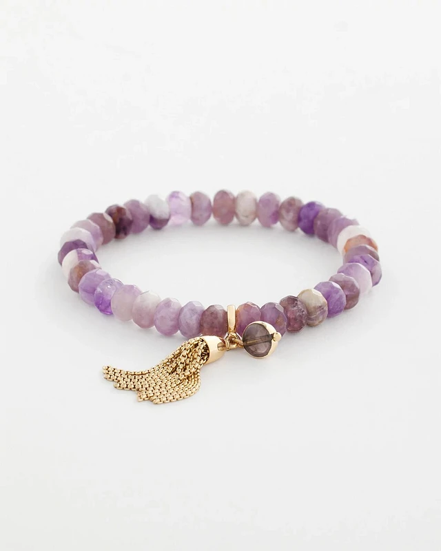 Faceted Amethyst Stone Beaded Charm Bracelet