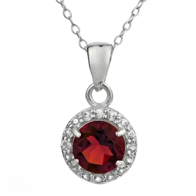 Faceted Genuine Garnet & White Topaz Sterling Silver Pendant Necklace