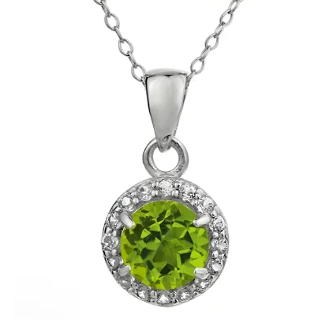 Faceted Genuine Peridot & White Topaz Sterling Silver Pendant Necklace