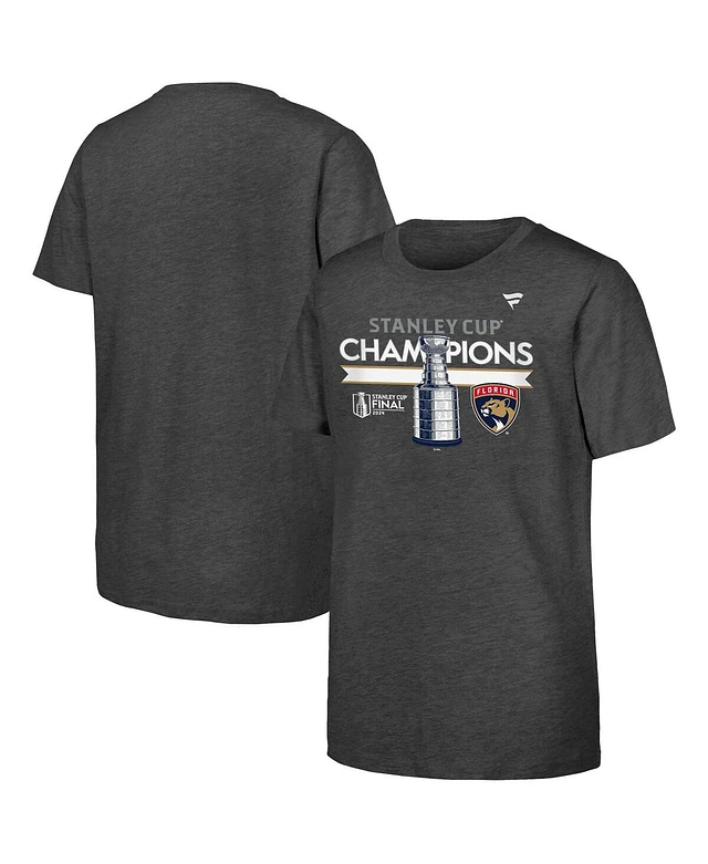 Fanatics Big Boys and Girls Heather Charcoal Florida Panthers 2024 Stanley Cup Champions Locker Room T-Shirt