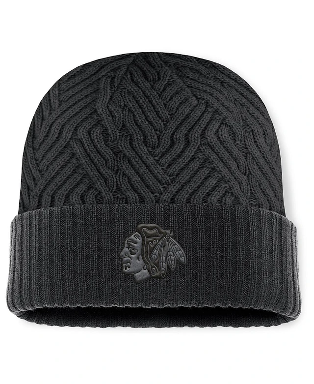 Fanatics Men's Black/Charcoal Chicago Blackhawks Cuffed Knit Hat with Pom