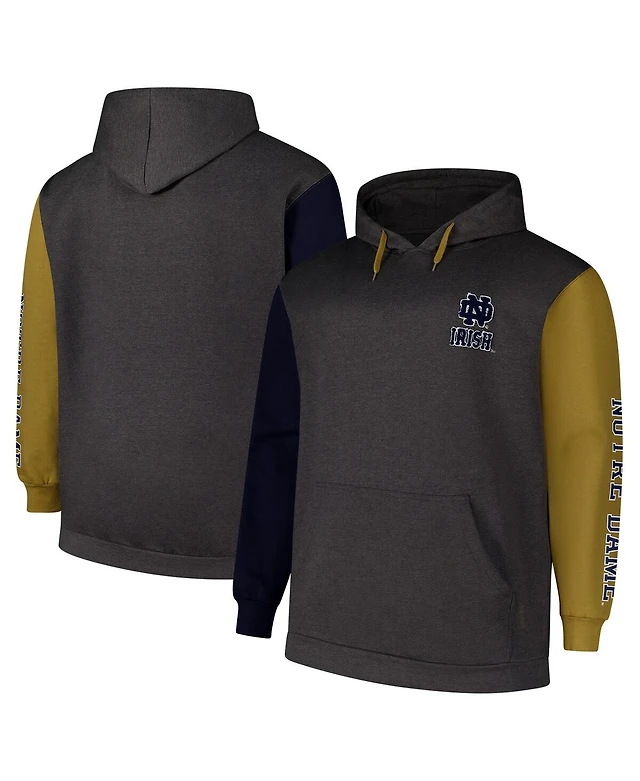 Fanatics Men's Charcoal Notre Dame Fighting Irish Big Tall Contrast Sleeves Pullover Hoodie