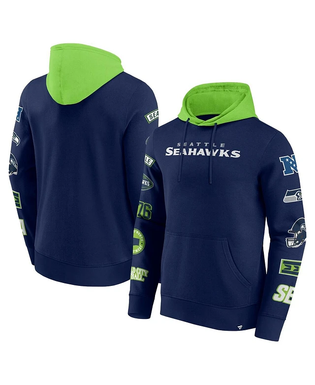 Fanatics Men's College Navy/Neon Green Seattle Seahawks Patched Out Pullover Hoodie
