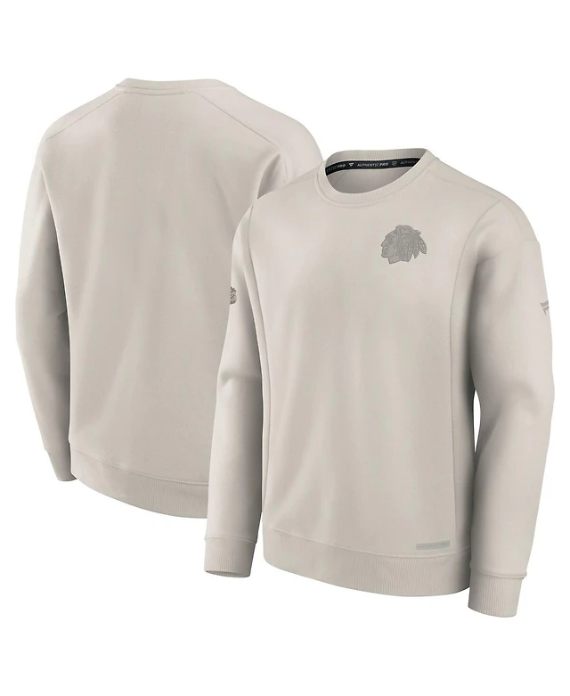 Fanatics Men's Cream Chicago Blackhawks Authentic Pro Road Fleece Pullover Sweatshirt