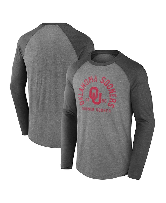 Fanatics Men's Gray Oklahoma Sooners Ball Drop Tri-Blend Raglan Long Sleeve T-Shirt