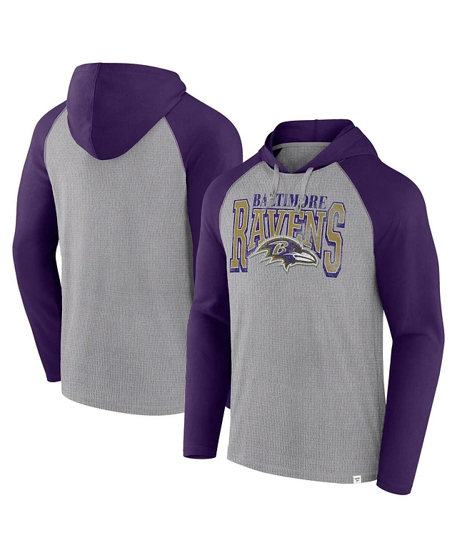 Fanatics Men's Gray/Purple Baltimore Ravens Under Center Long Sleeve Hoodie T-Shirt