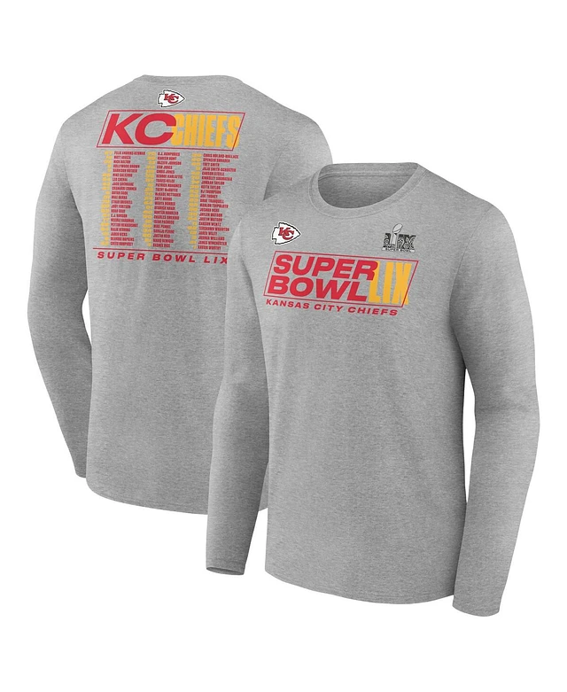Fanatics Men's Heather Gray Kansas City Chiefs Super Bowl Lix Roster Long Sleeve T-Shirt