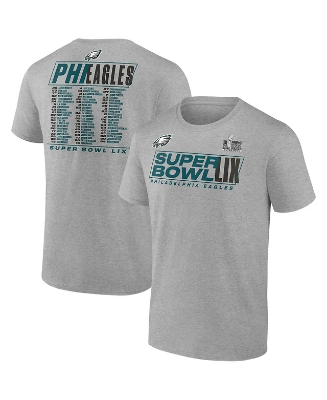 Fanatics Men's Heather Gray Philadelphia Eagles Super Bowl Lix Roster T-Shirt
