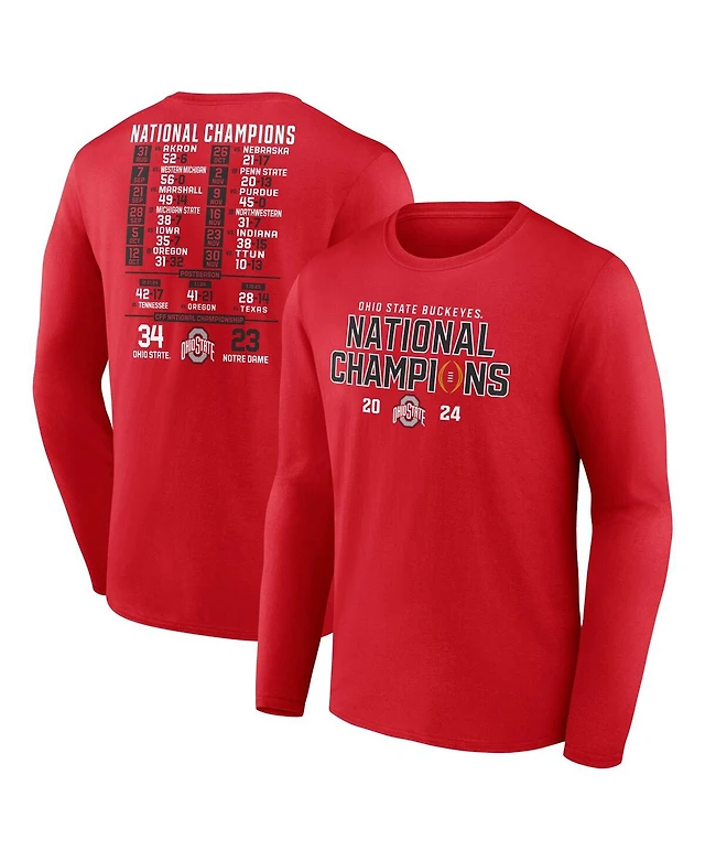 Fanatics Men's Scarlet Ohio State Buckeyes College Football Playoff 2024 National Champions Schedule Long Sleeve T-Shirt