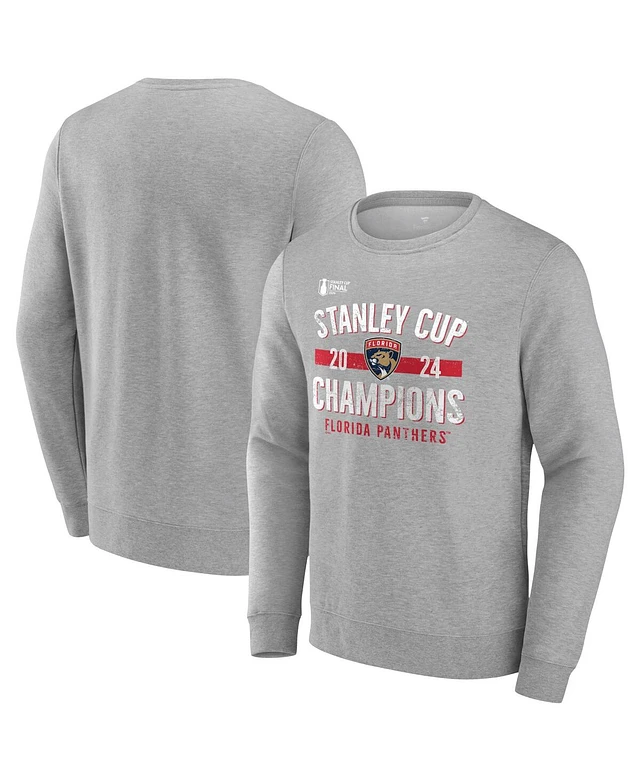 Fanatics Men's Steel Florida Panthers 2024 Stanley Cup Champions Throwback Fleece Pullover Sweatshirt