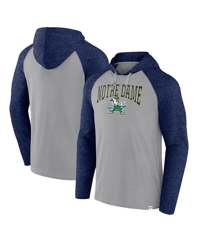 Fanatics Men's Steel/Navy Notre Dame Fighting Irish Qualifier Long Sleeve Transitional Hoodie T-Shirt