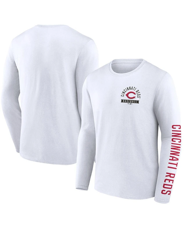Fanatics Men's White Cincinnati Reds Press Box Long Sleeve T-Shirt