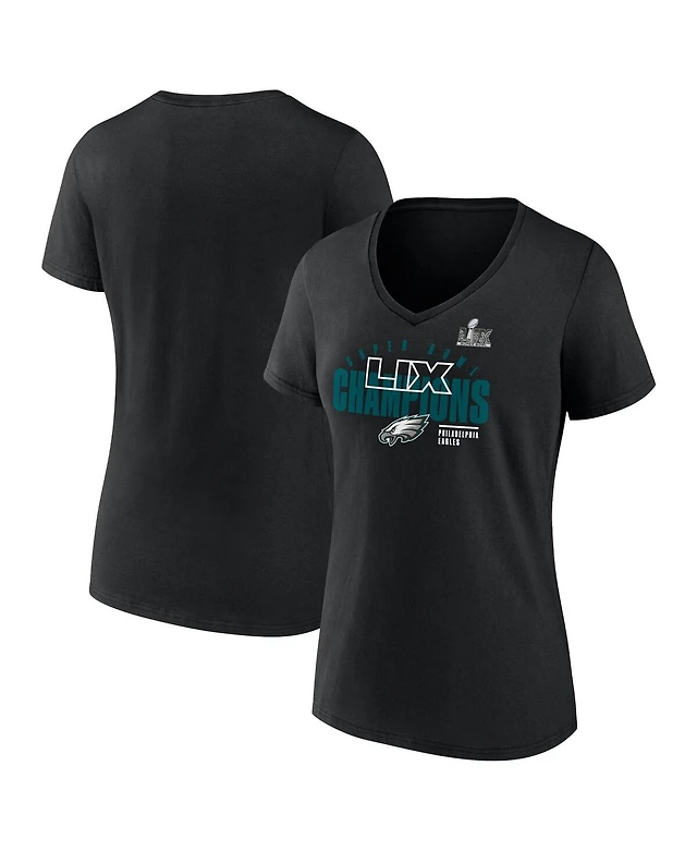 Fanatics Women's Black Philadelphia Eagles Super Bowl Lix Champions Iconic Victory V-Neck T-Shirt