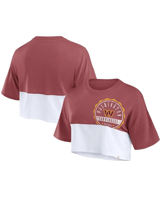 Fanatics Women's Burgundy/White Washington Commanders Boxy Color Split Cropped T-Shirt