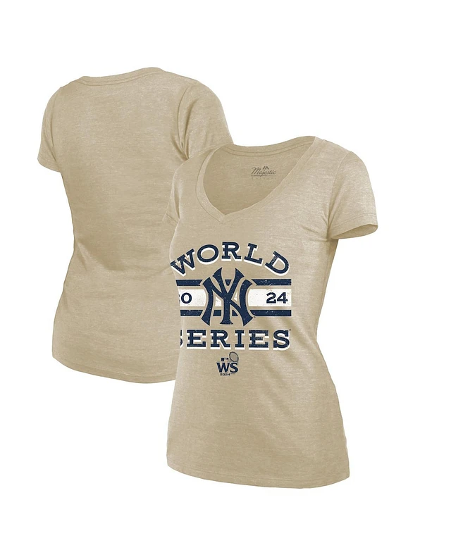 Fanatics Women's Cream New York Yankees 2024 World Series Modest Tri-blend V-neck T-shirt