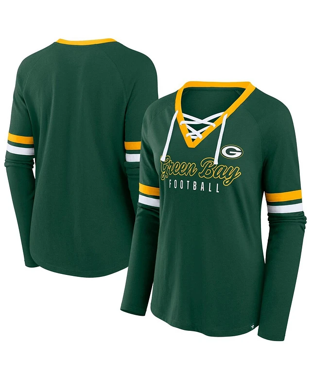 New Era Women's Green Green Bay Packers Lace-Up Notch-Neck Long Sleeve T-Shirt