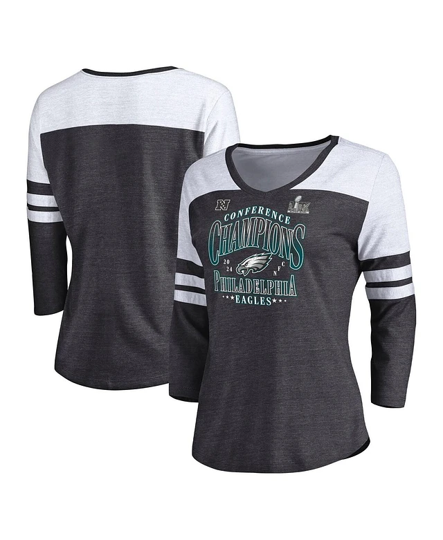 Fanatics Women's Heather Charcoal Philadelphia Eagles 2024 Nfc Champions Tri-Blend 3/4 Sleeve V-Neck T-Shirt