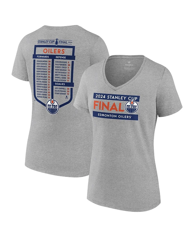 Fanatics Women's Heather Gray Edmonton Oilers 2024 Stanley Cup Final Plus V-Neck Roster T-Shirt