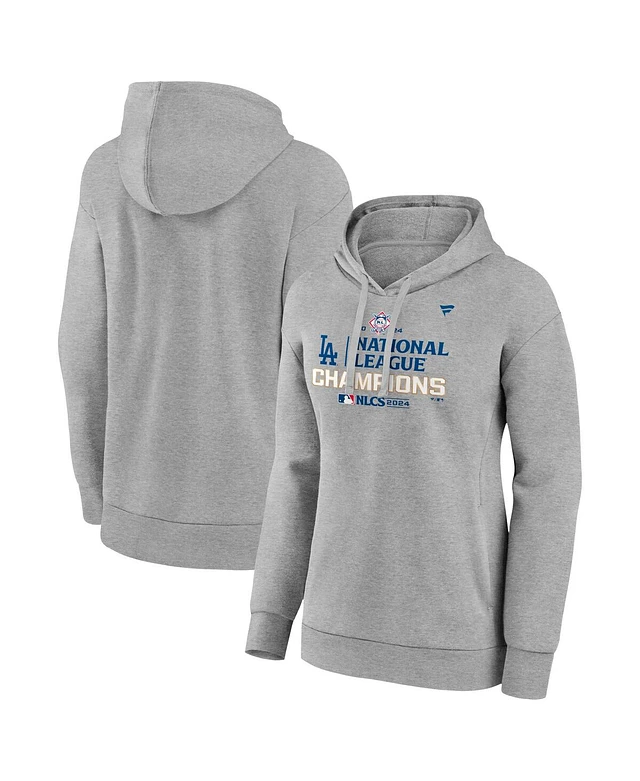 Fanatics Women's Heather Gray Los Angeles Dodgers 2024 National League Champions Locker Room Pullover Hoodie