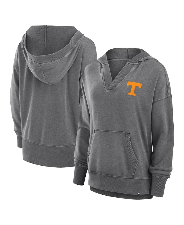 Fanatics Women's Heather Gray Tennessee Volunteers Initiative Snow Wash French Terry V-Neck Pullover Hoodie