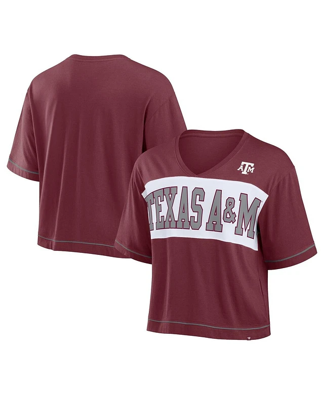 Fanatics Women's Maroon Texas A&M Aggies Home Team Bold Fashion Modest V-Neck Cropped T-Shirt