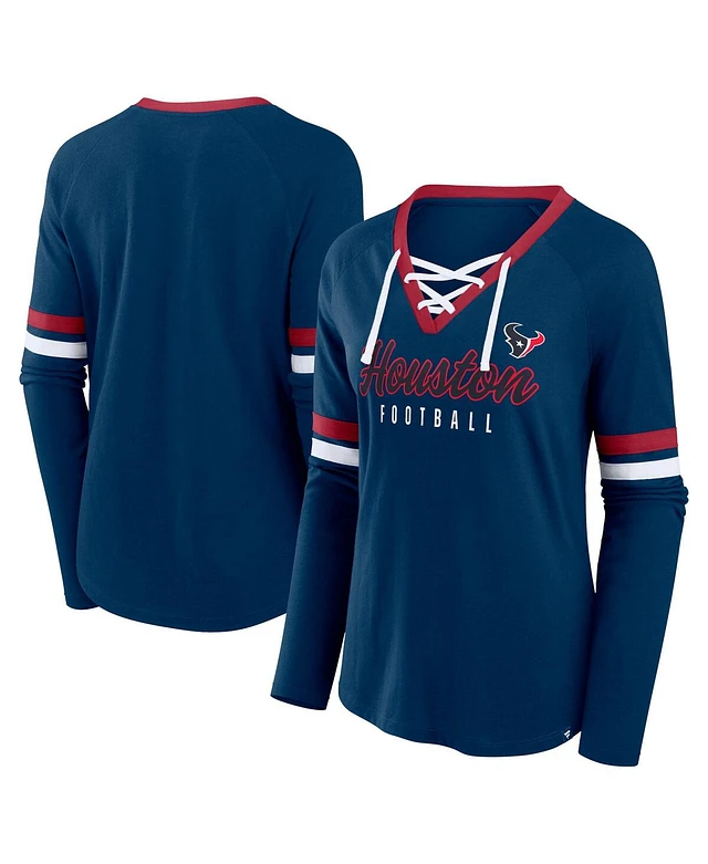 Fanatics Women's Navy Houston Texans Won and Done Lace-Up Long Sleeve Fashion Top