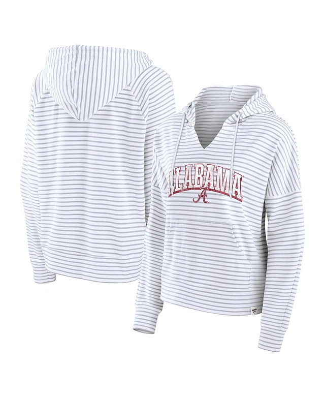 Fanatics Women's White/Gray Alabama Crimson Tide Arch Logo Striped Notch Neck Pullover Hoodie
