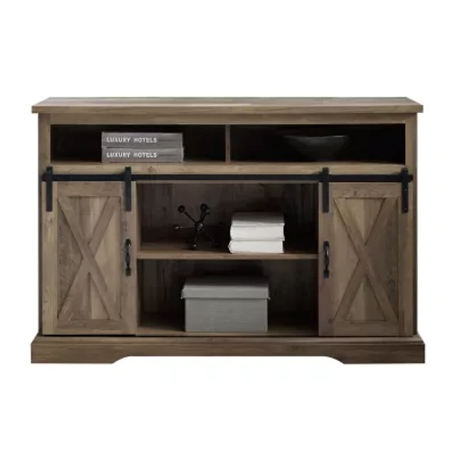 Farmhouse 65" Sliding Barndoor Wood TV Stand