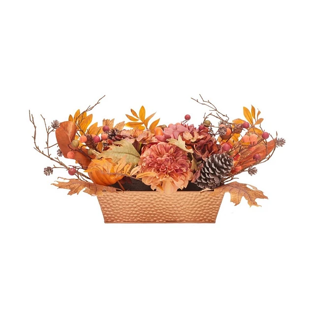 Faux 25 Inch Peony & Pumpkin Potted Arrangement