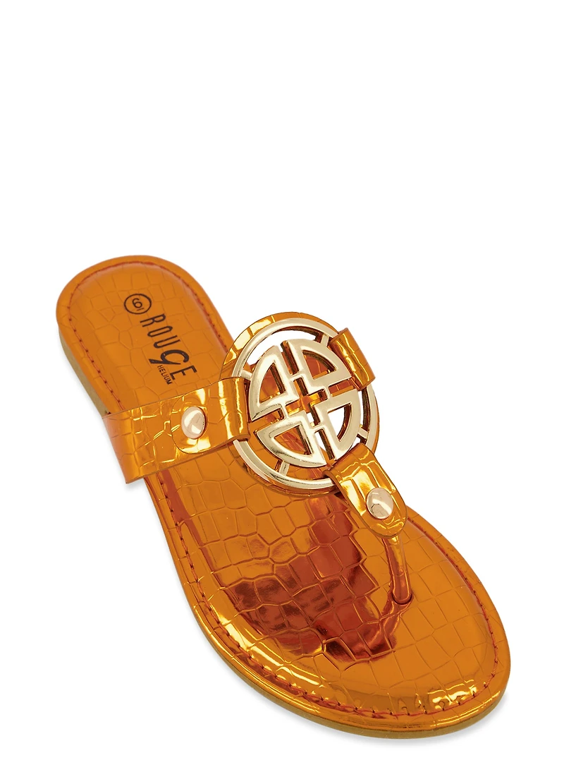 Faux Croc Geo Pendant Thong Sandals