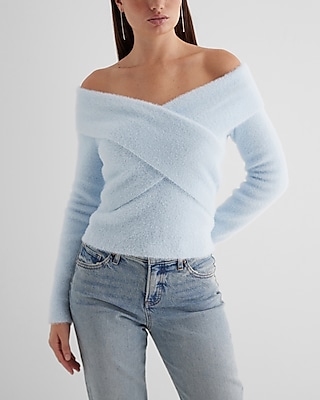 Faux Fur Off The Shoulder Surplice Sweater