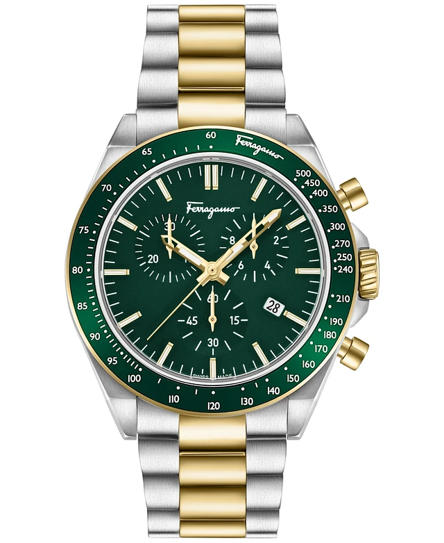 Ferragamo Men's Swiss Chronograph Sport Two-Tone Stainless Steel Bracelet Watch 44mm